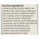 不活泼的成份:丙烯酰胺共聚物,丙烯酸酯,尿囊素,芦荟叶子汁液(芦荟),癸甘油三酸酯,辛酸,鲸蜡醇,Dimethicone,乙二胺四乙酸二钠,d-泛醇,Emu油,Ethylhexylglycerin,甘油,甘油基硬脂酸盐,甲基葡萄糖Sesquistearate, 矿物油,PEG-20甲基葡萄糖倍半硬脂酸酯,PEG-100硬脂酸酯,苯氧乙醇,聚山梨酯80,聚山梨酯85,丙烯酸钠,丙烯酰二甲基牛磺酸钠共聚物,硬脂酸,三乙醇胺,维生素E醋酸酯(维生素E)