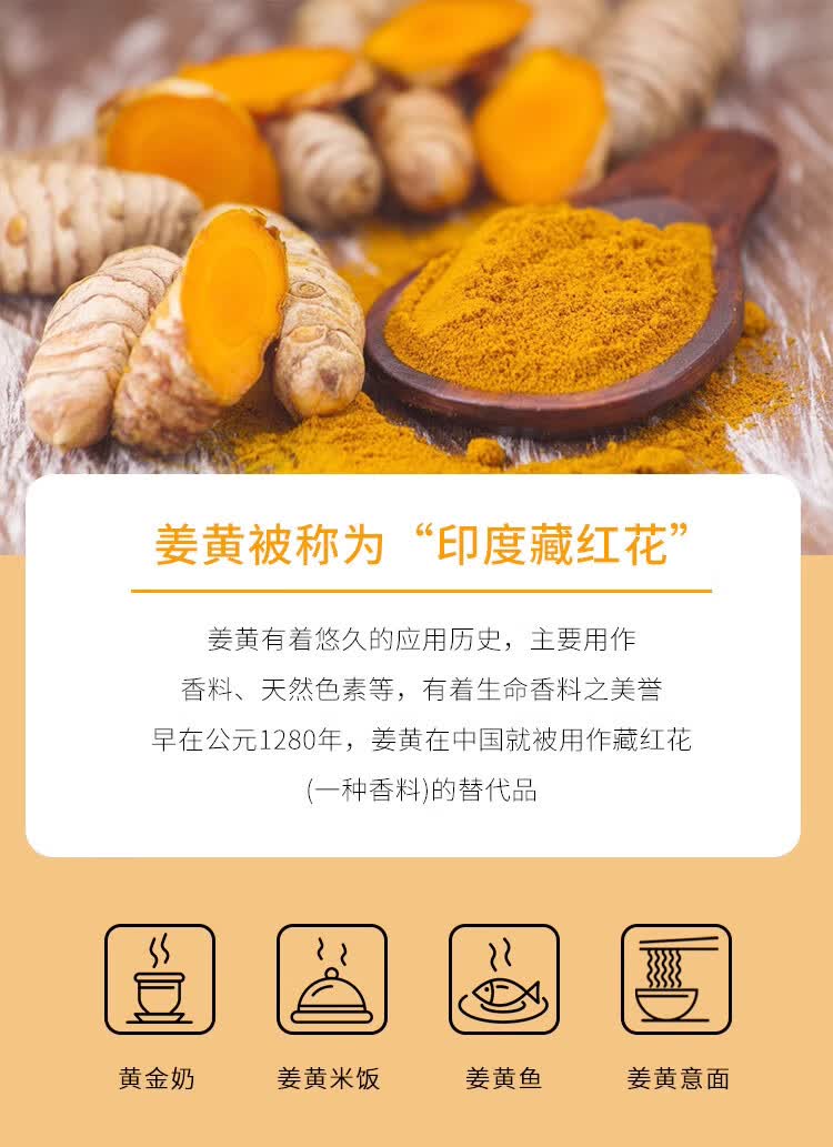 不仅是带有浓郁香辛的调味品,还是给咖喱和其他食品染上金黄色的主角,它很好地丰富了我们的味觉和视觉。