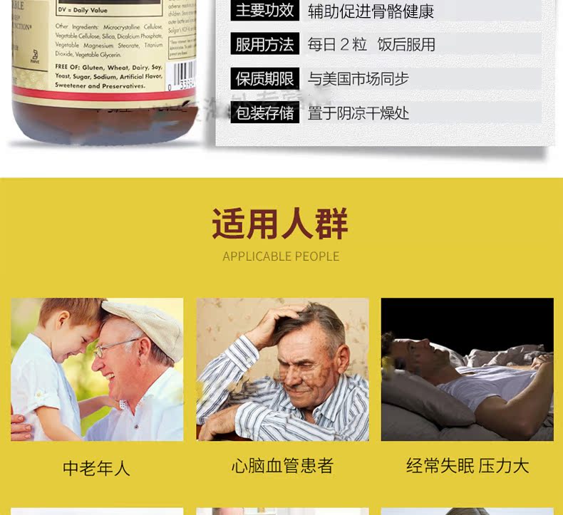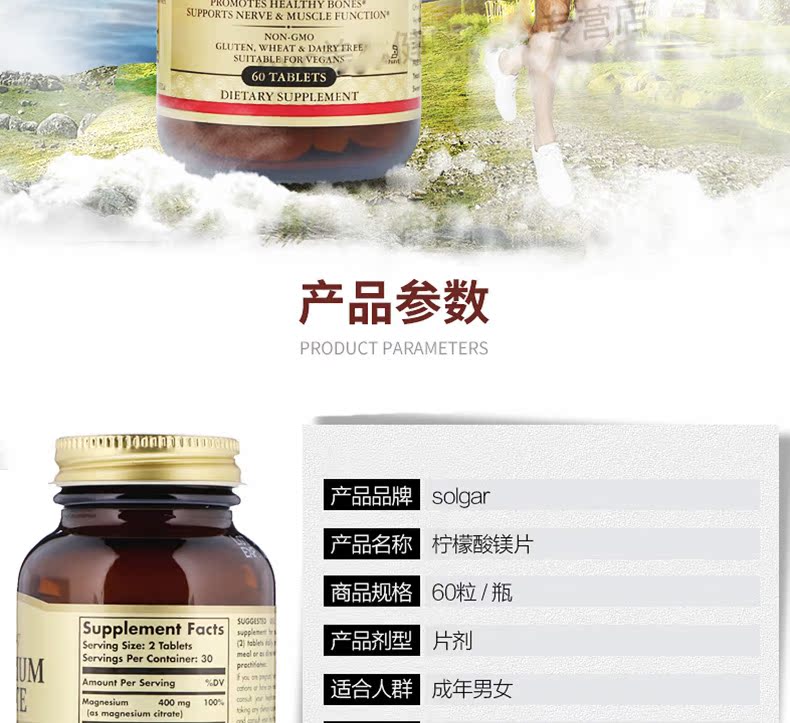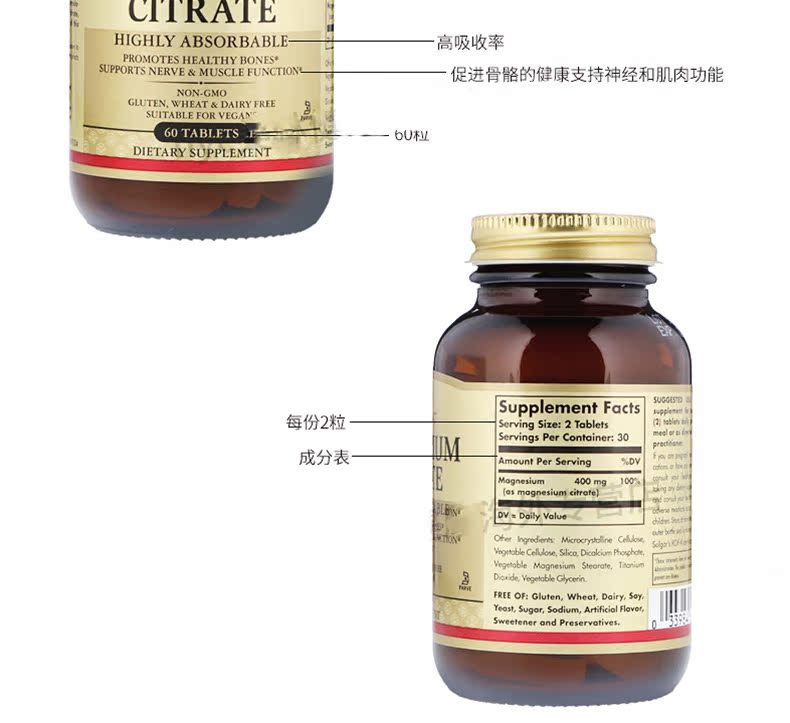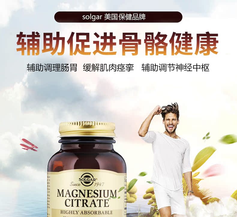 产品名称:美国solgar柠檬酸钙镁学生补钙成人青少年中老年钙片抗腿抽筋120片