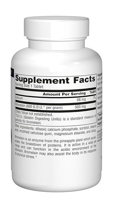 产品名称:Source Naturals 菠萝蛋白酶补充片 600GDU/克 500毫克 60片