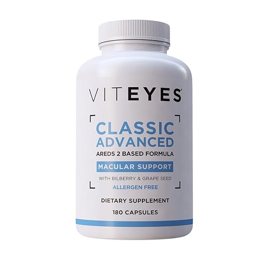 Viteyes AREDS 2 Advanced含有下式:维生素C 500毫克,维生素E 400 IU,锌25毫克,铜1.2毫克,叶黄素10毫克,玉米黄质3.5毫克,硒100微克,越桔20毫克,葡萄籽25毫克,和ALA 25毫克。
